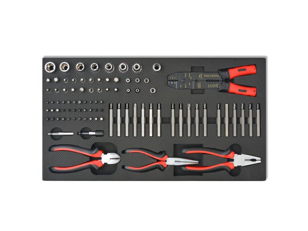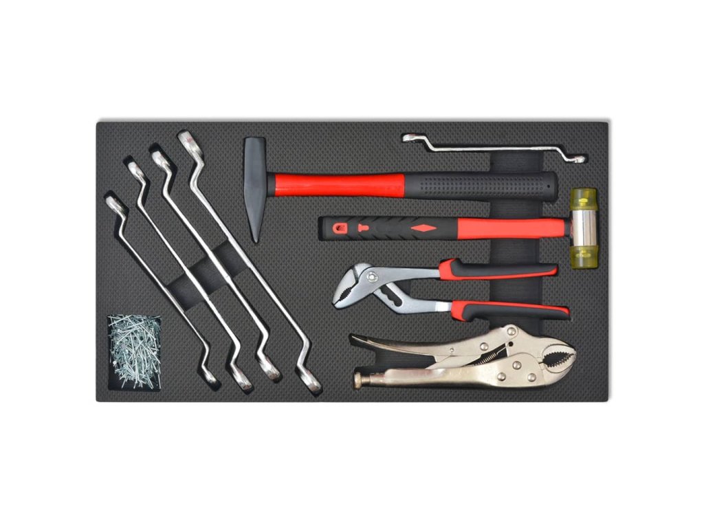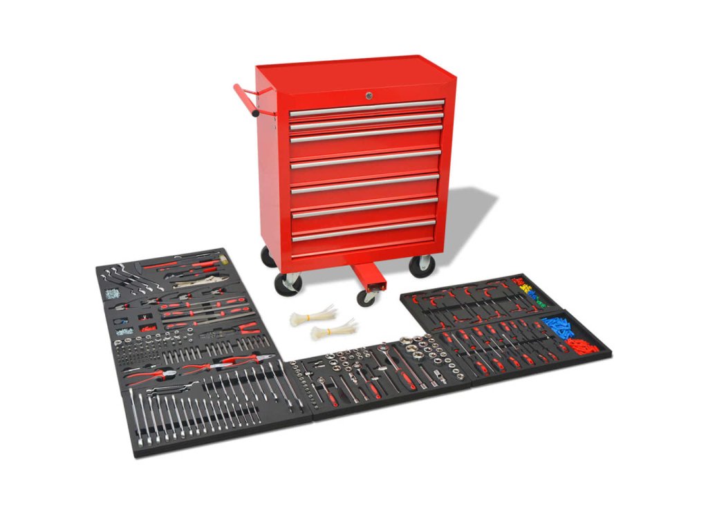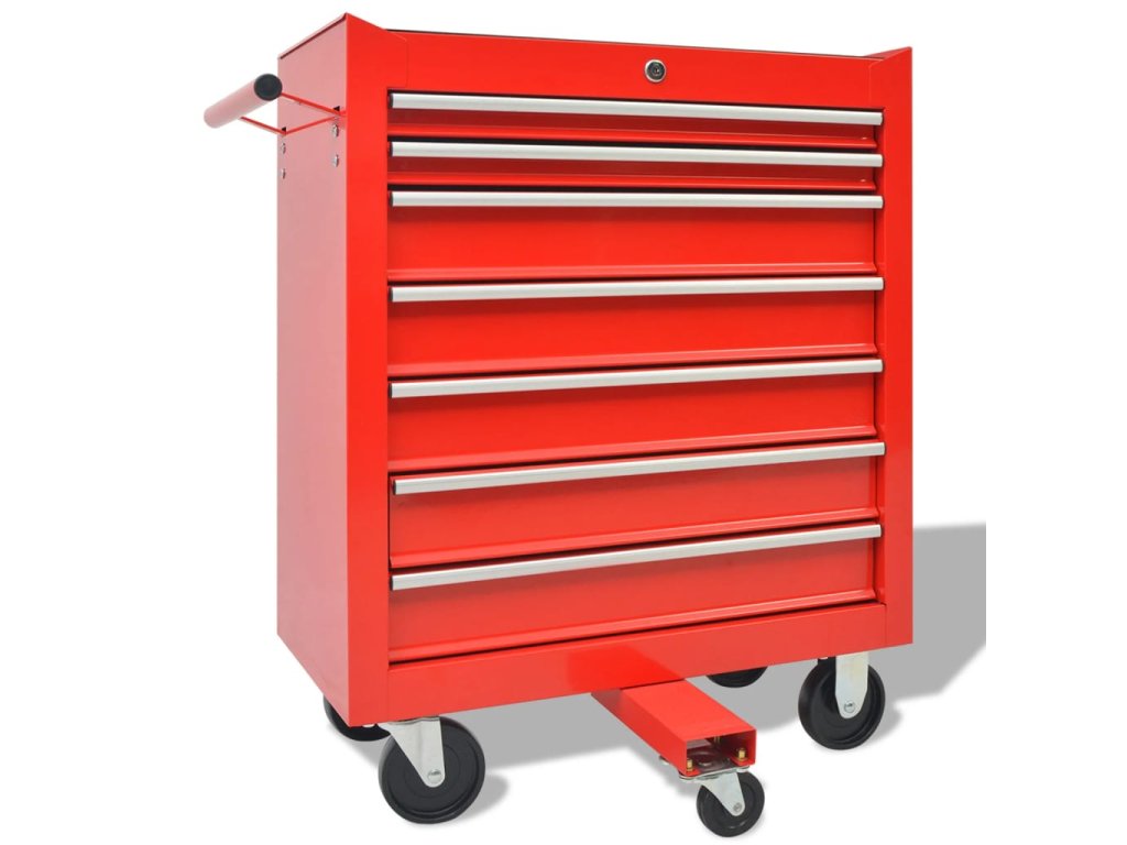 Tento pojízdný dílenský vozík se 7 zásuvkami pro dílny obsahuje dobře vybavenou sadu nástrojů pro opravy vozidel. Obsahuje výběr nejrůznějšího nářadí v 7 zásuvkách.