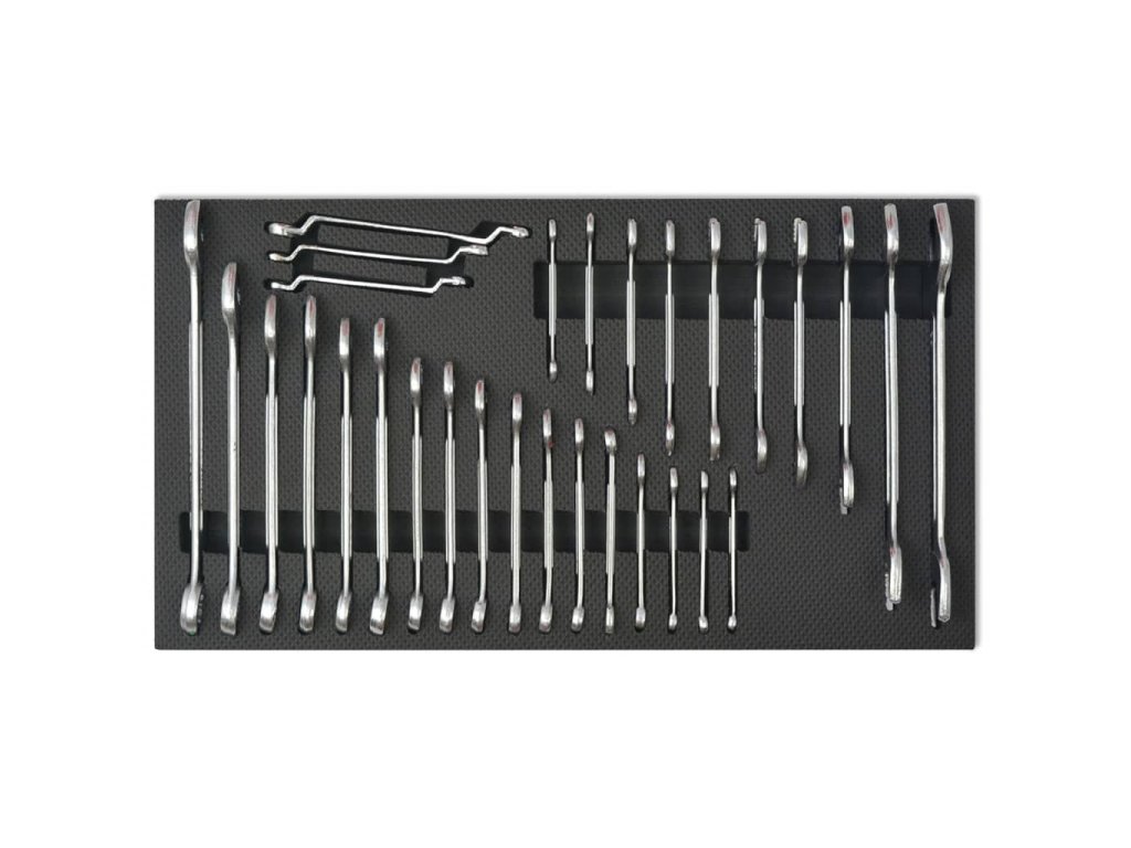 - 10x otevřený klíč: 6-7, 8-9, 10-11, 12-13, 14-15, 16-17, 18-19, 20-22, 24-27 a 30-32 mm