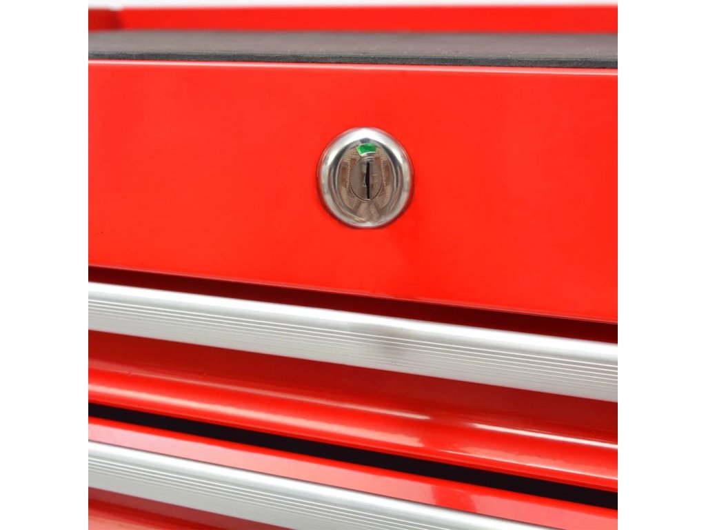 Vozík je vyrobený z vysoce kvalitní oceli a má robustní a odolnou konstrukci. Všech 7 zásuvek je možné současně zamknout integrovaným zámkem a zabránit tak nechtěnému otevírání zásuvek při pohybu vozíku. Robustní horní deska vozíku s nástroji je skvělým místem pro odkládání často používaných nástrojů, kde je budete mít po ruce. Vozík má čtyři otočná kolečka, z nichž dvě jsou opatřena brzdami, a prodlužovací tyč s opěrným kolečkem, vpředu, a proto lze s vozíkem snadno manipulovat. K tlačení vozíku slouží také pohodlná boční rukojeť.