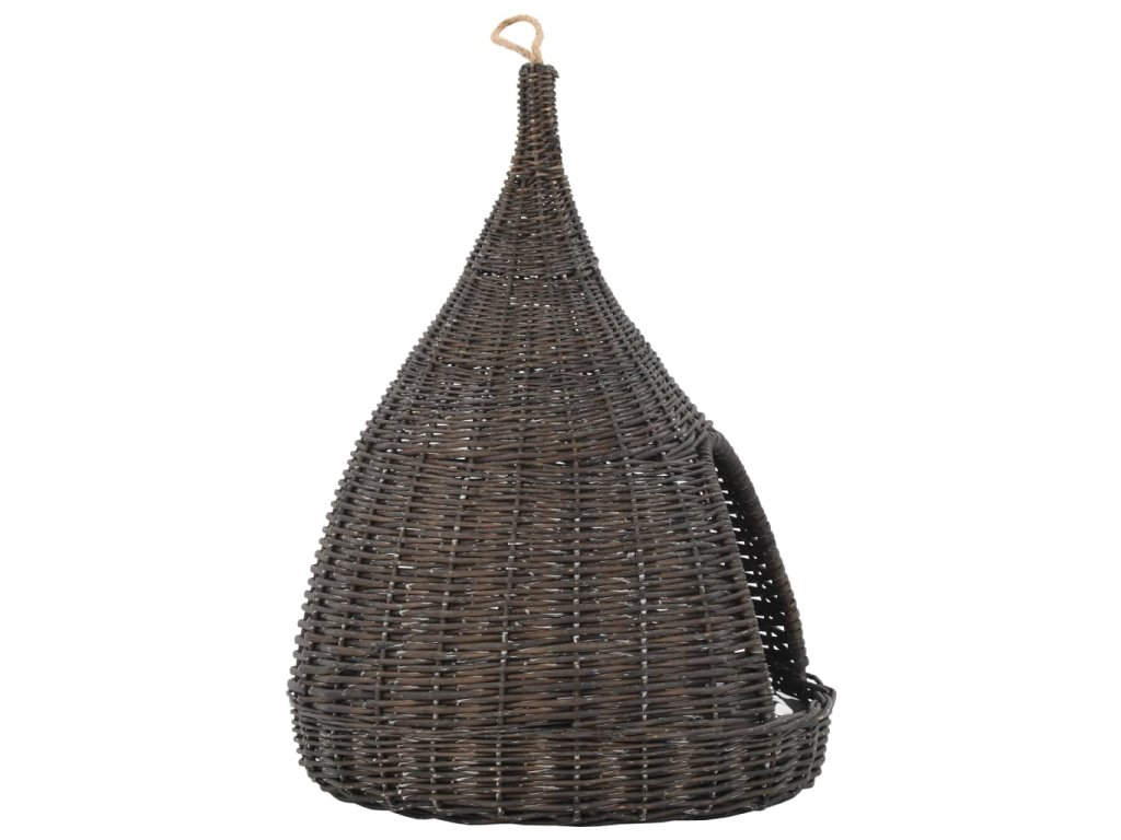 Domeček pro kočky s poduškou šedý 40 x 60 cm přírodní vrba týpí 170778