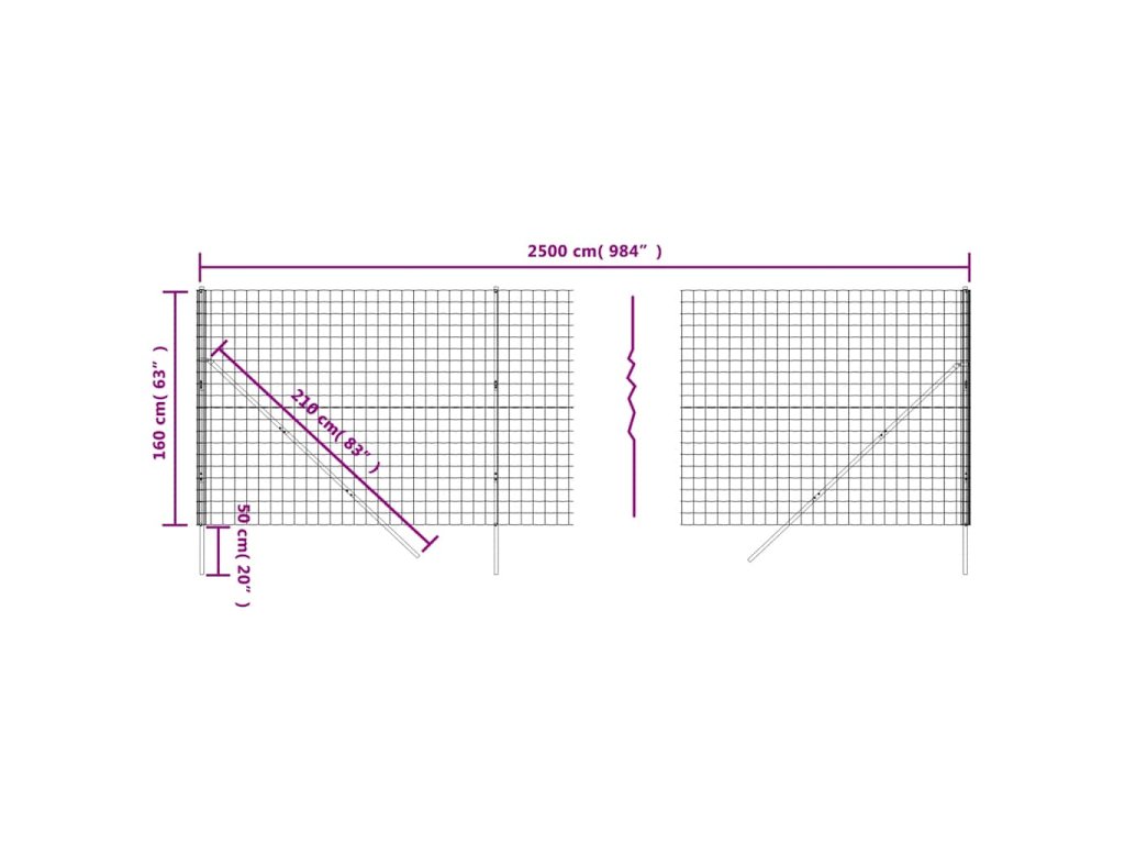 Drátěný plot antracitový 1,6 x 25 m pozinkovaná ocel 154236