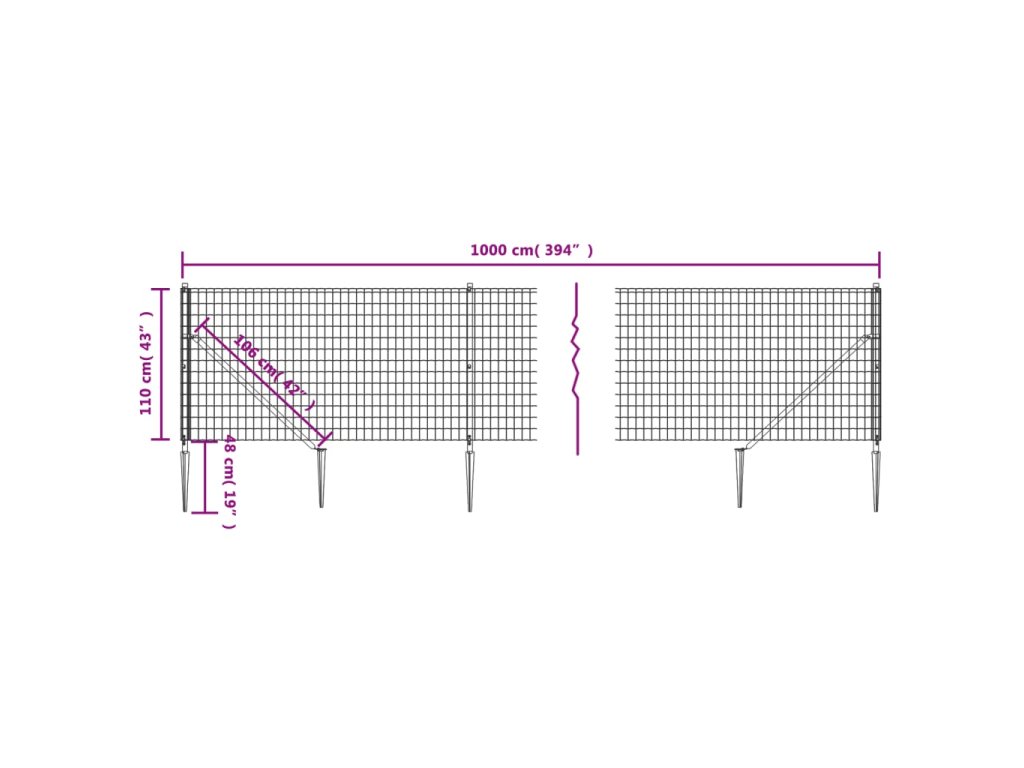 Drátěný plot s kotevními hroty antracitový 1,1 x 10 m 154242