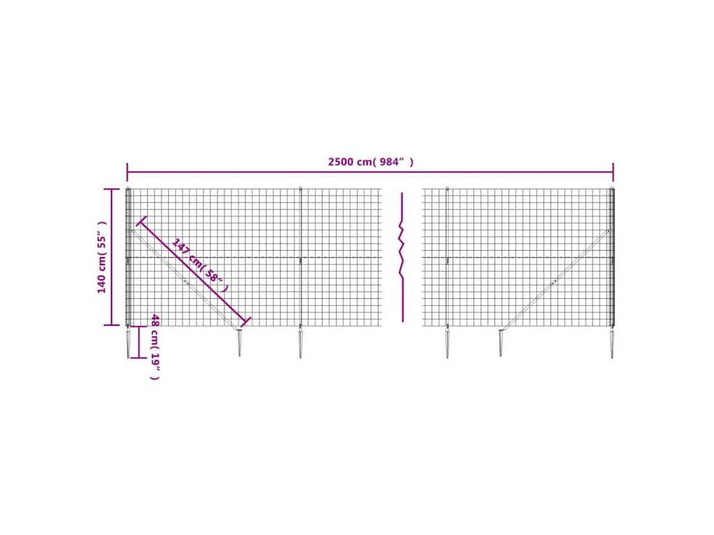 Drátěný plot s kotevními hroty antracitový 1,4 x 25 m 154283