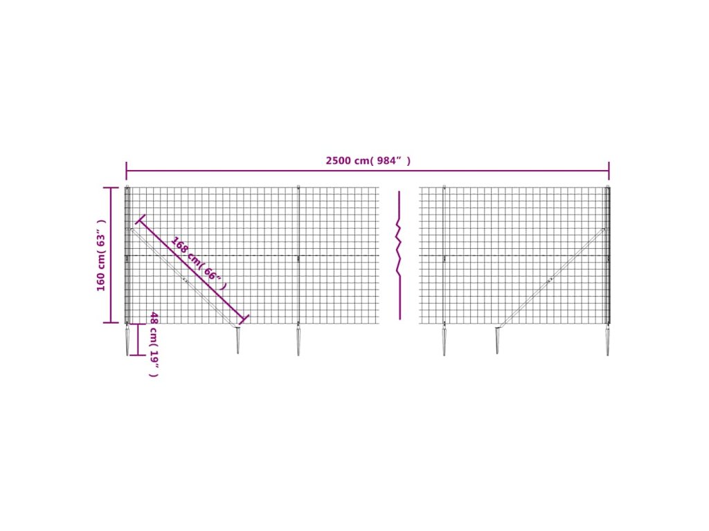 Drátěný plot s kotevními hroty antracitový 1,6 x 25 m 154284