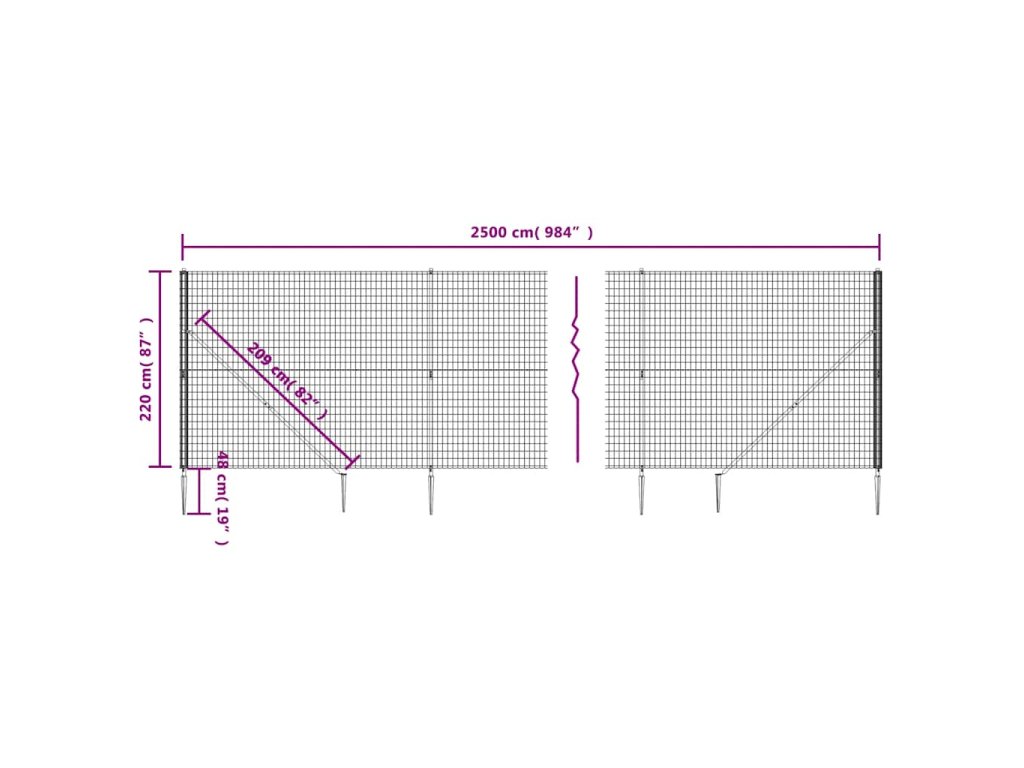 Drátěný plot s kotevními hroty antracitový 2,2 x 25 m 154255