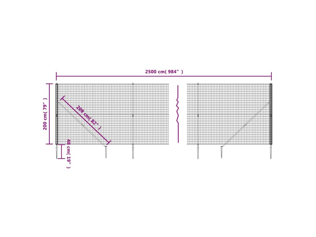 Drátěný plot s kotevními hroty antracitový 2 x 25 m 154254