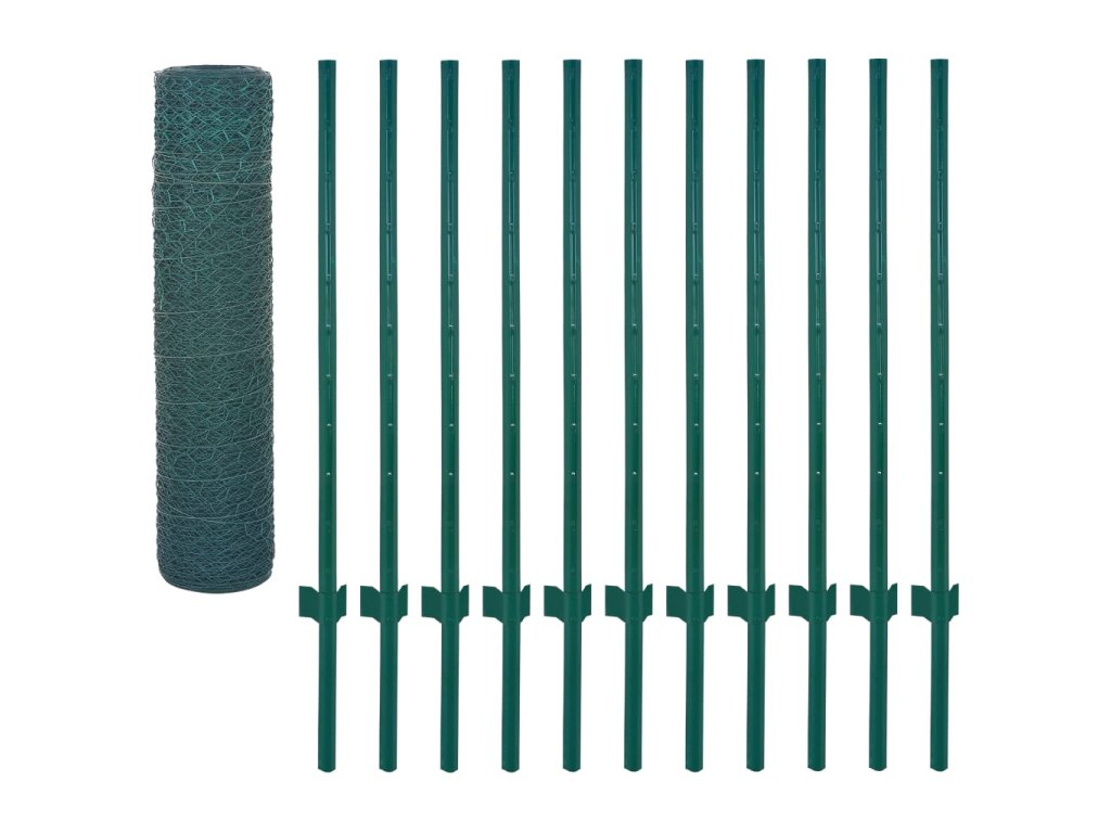 Drátěný plot se sloupky ocel 25 x 0,5 m zelený 144608