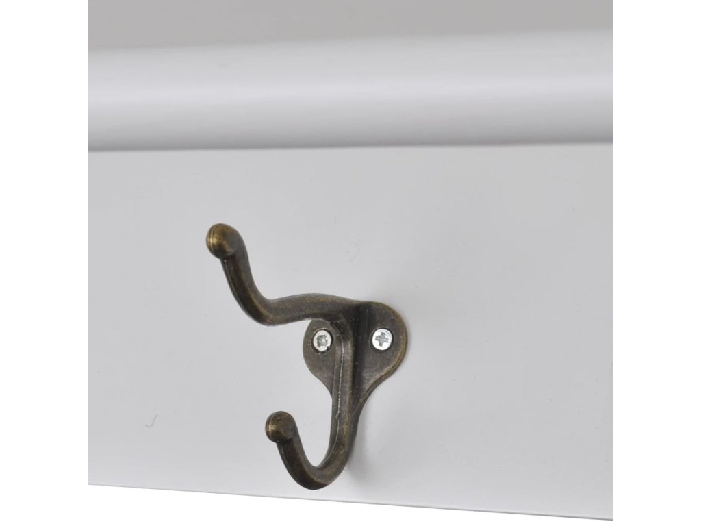 - Materiál: MDF a borové dřevo (rám) + železo (úchytka a háček) + sklo