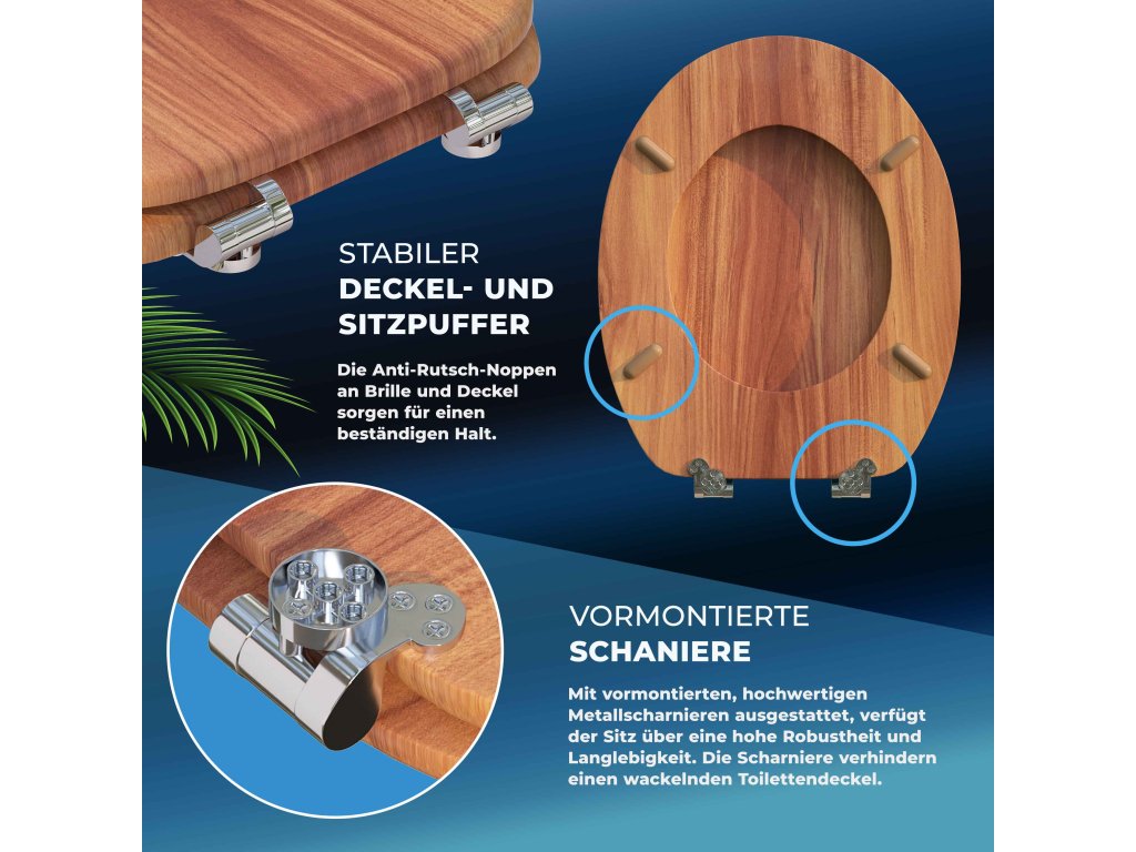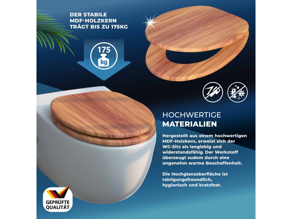 Dřevěné WC sedátko s tichým zavíráním – MDF, dekor dřeva