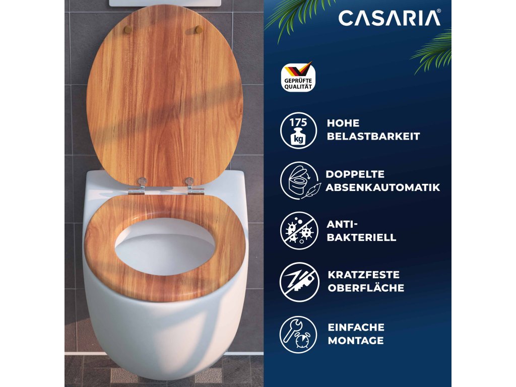 Robustní jádro z MDF desky a leštěné kovové panty zajišťují vysokou stabilitu a dlouhou životnost. Čtyři upevňovací body a dvě možnosti montáže zajistí kompatibilitu s většinou běžných WC. Instaluje se snadno a bez složitého přizpůsobování.