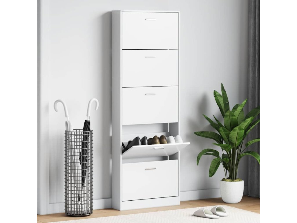 Dřevěný botník s 5 přihrádkami bílý 241240