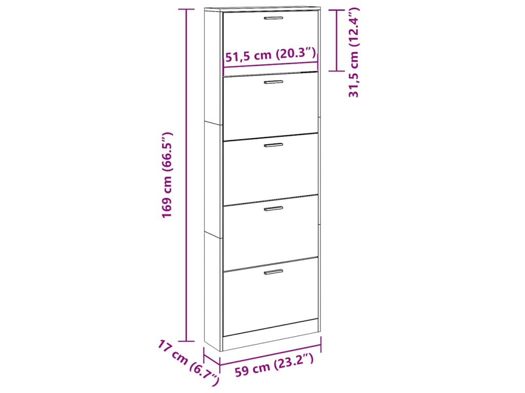 - Celkové rozměry: 59 x 17 x 169 cm (D x Š x V)