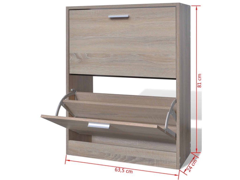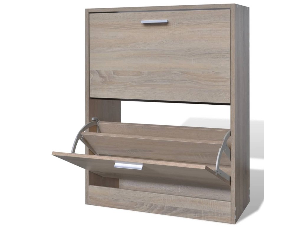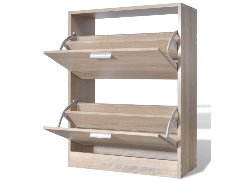 Tento dřevěný botník obsahuje 2 přihrádky a je vyroben v jednoduchém, avšak stylovém designu. Od této chvíle se vaše boty nebudou více povalovat po zemi.
