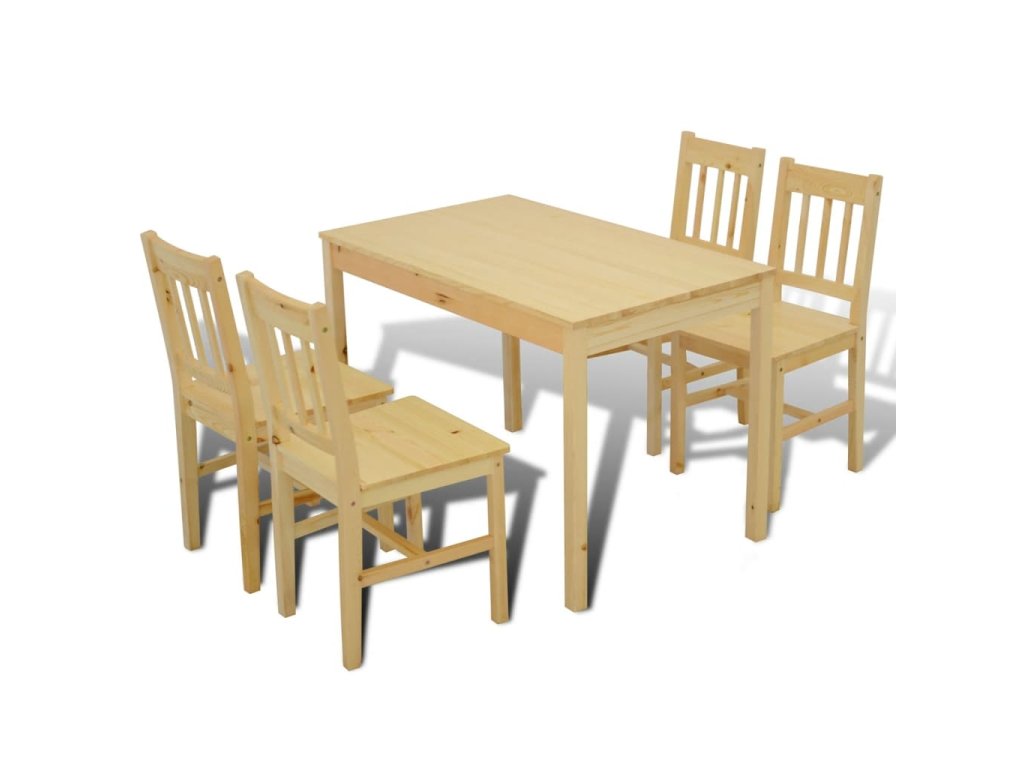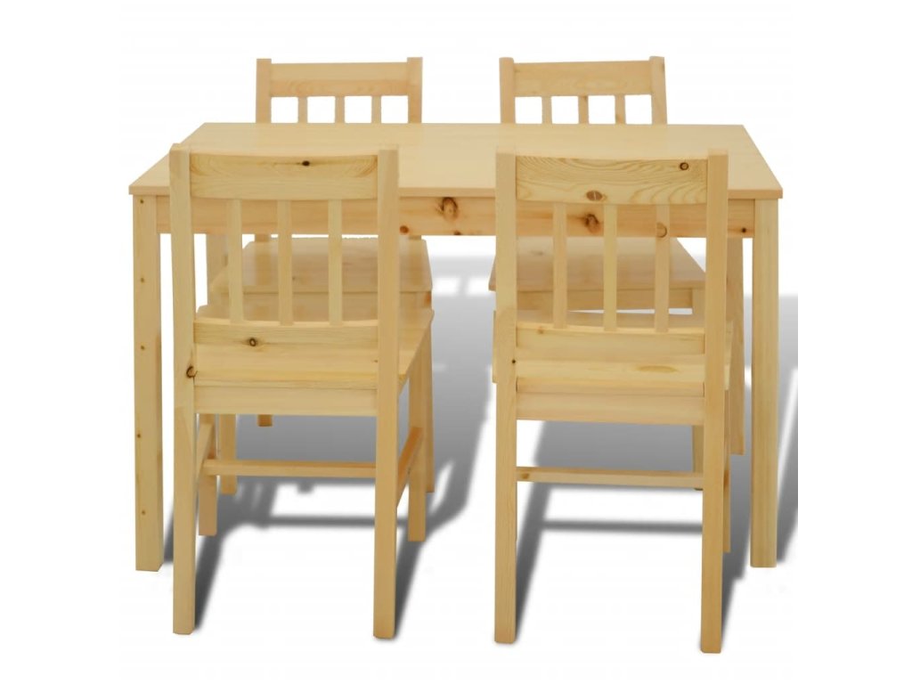 Tento dřevěný jídelní set, skládající se z 5 kusů nábytku s jednoduchým designem a čistými liniemi, je vynikající volbou pro vaši jídelnu nebo kuchyni. Díky prosté eleganci tohoto jídelního setu bude každé stolování speciální.
