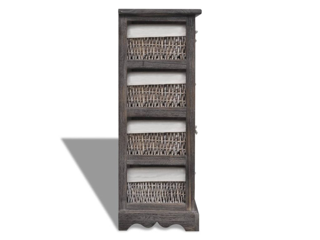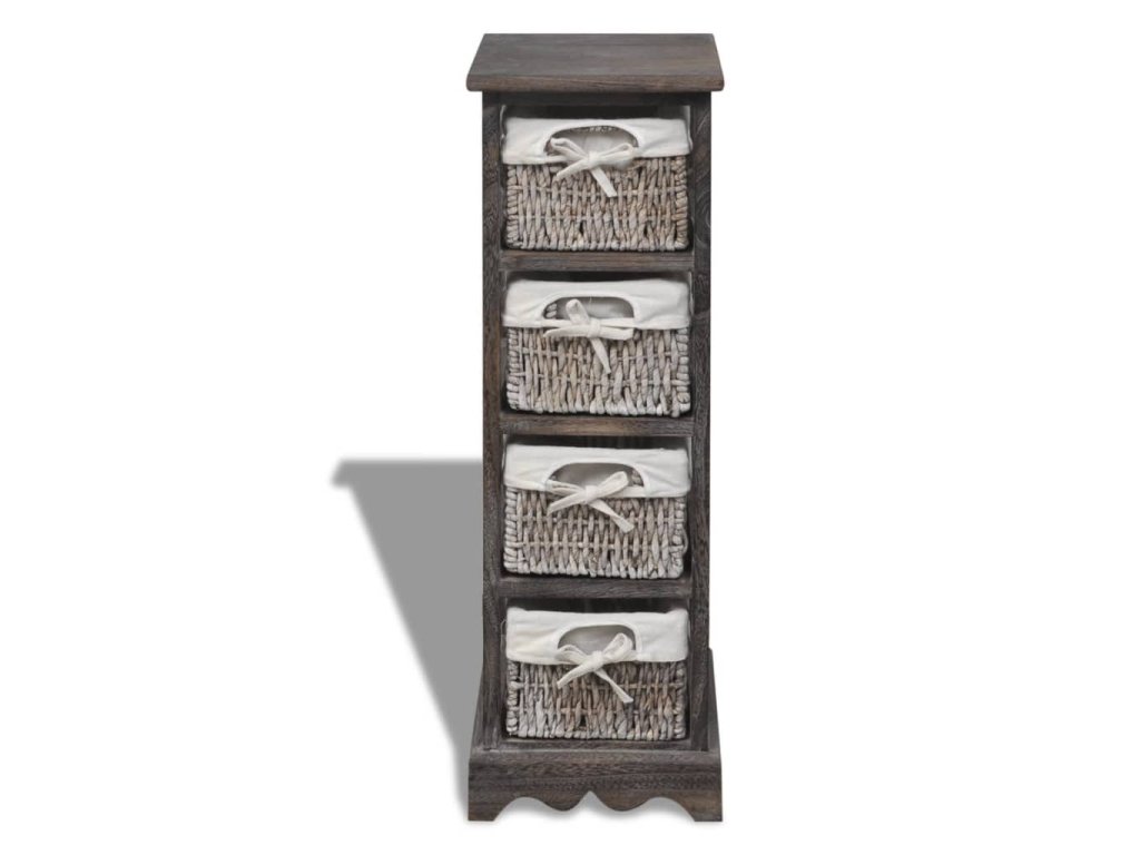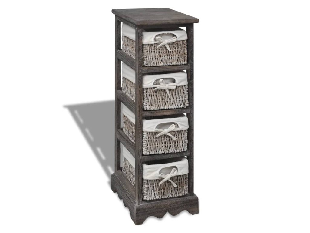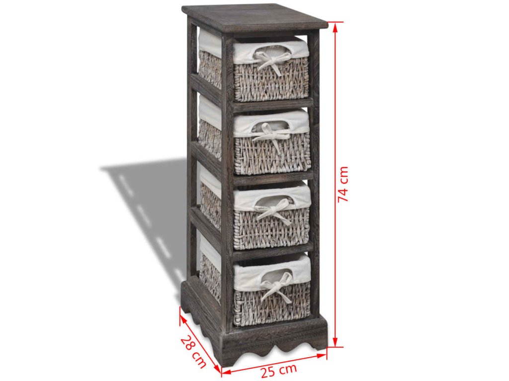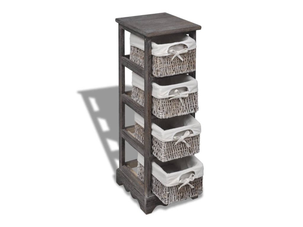 Dřevěný úložný regál s 4 proutěnými košíky hnědý 240800