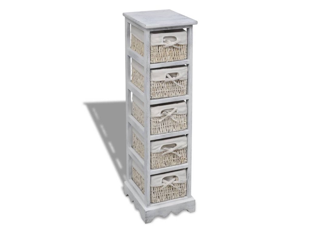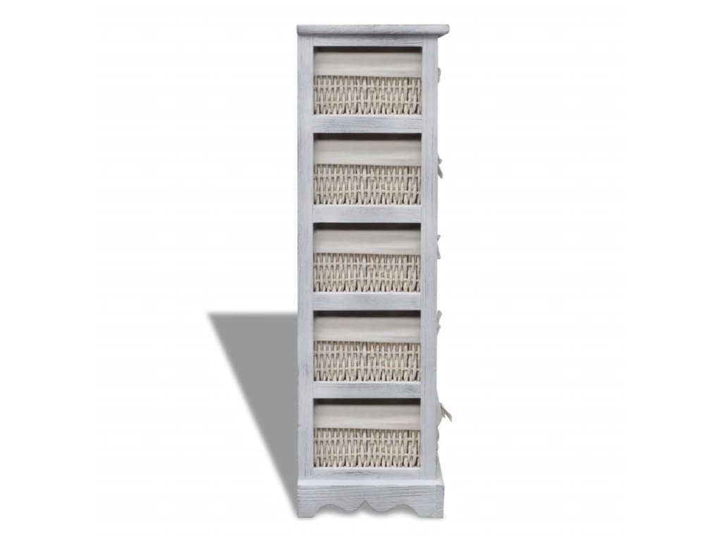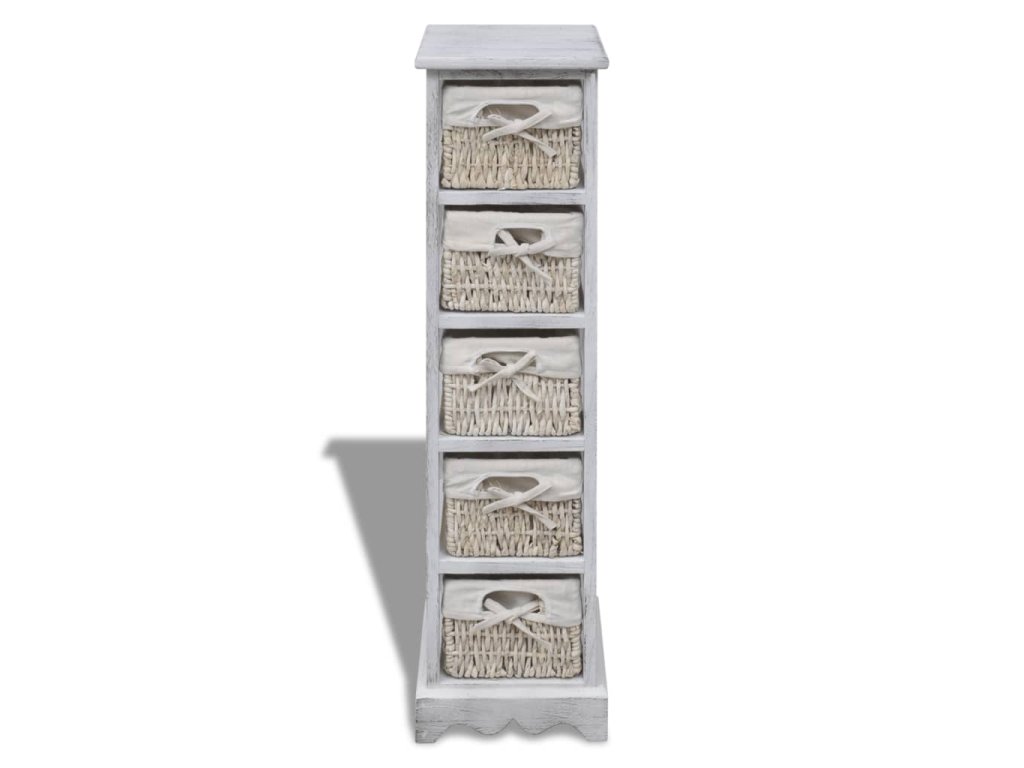 Dřevěný úložný regál s 5 proutěnými košíky bílý 240798