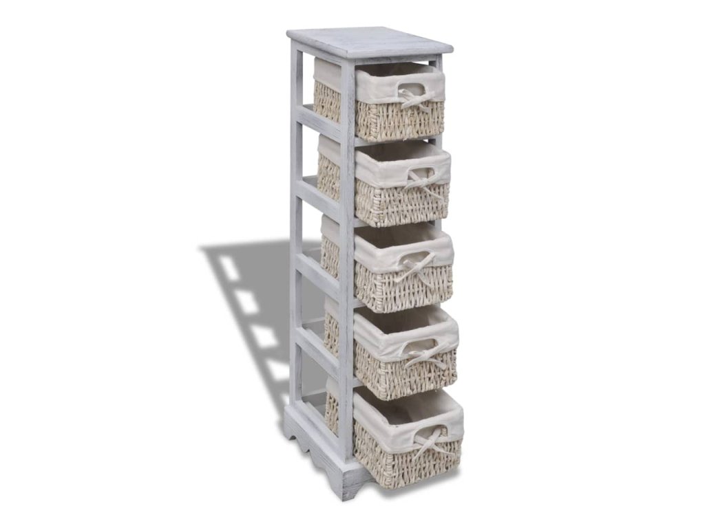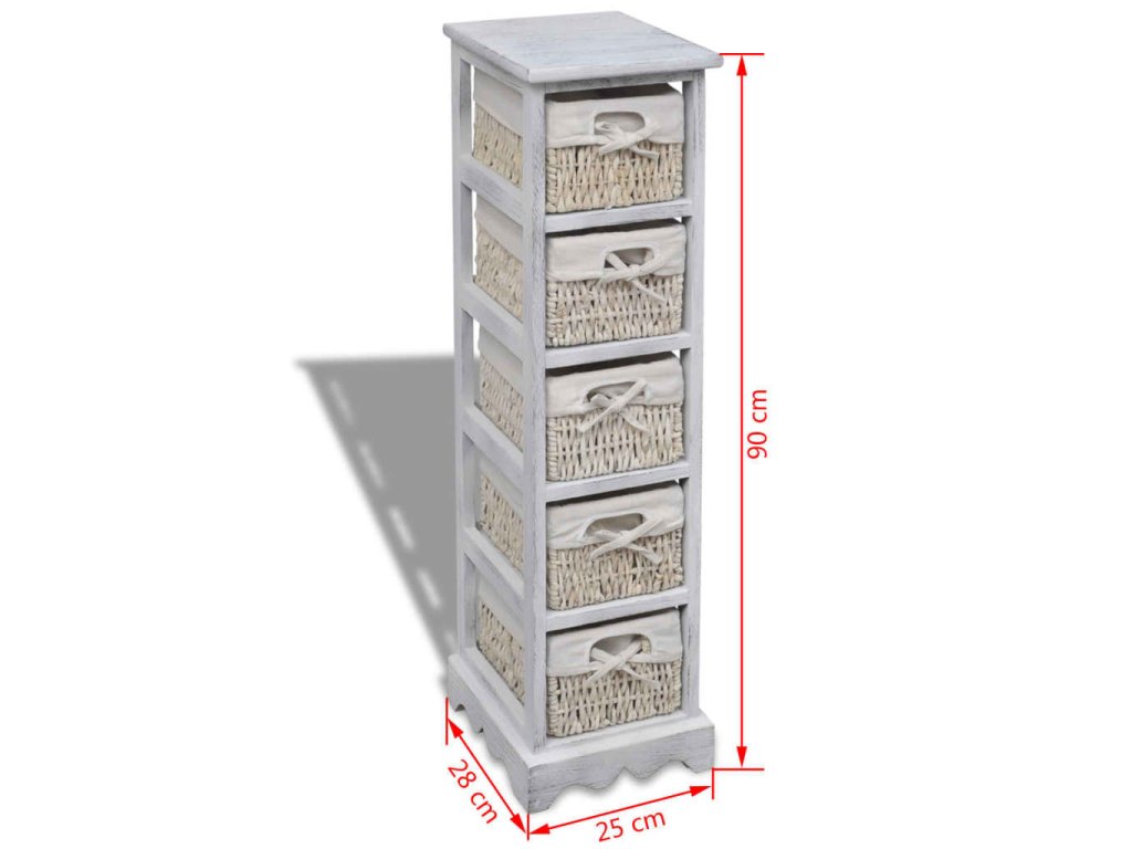 Tento odolný dřevěný regál, který se dodává s 5 proutěnými košíky, vám poskytne spoustu místa pro uložení vašich cenností a zároveň vnese do vašeho pokoje venkovský styl. Náš dřevěný regál bude jistě jedním z vašich oblíbených kusů nábytku v jakémkoli pokoji.