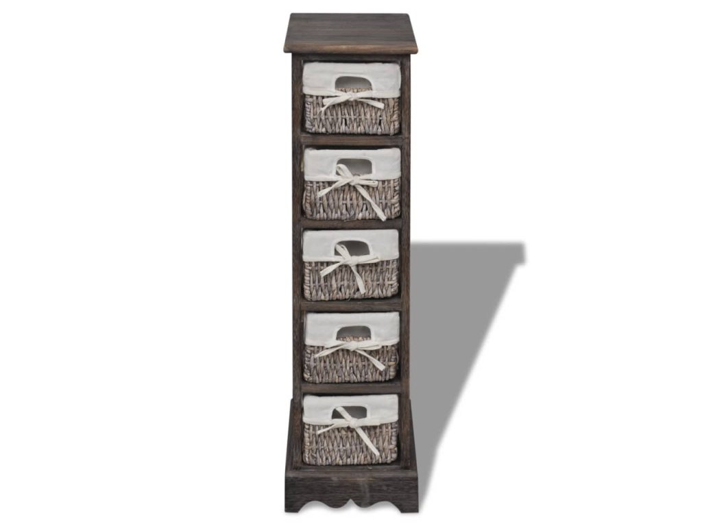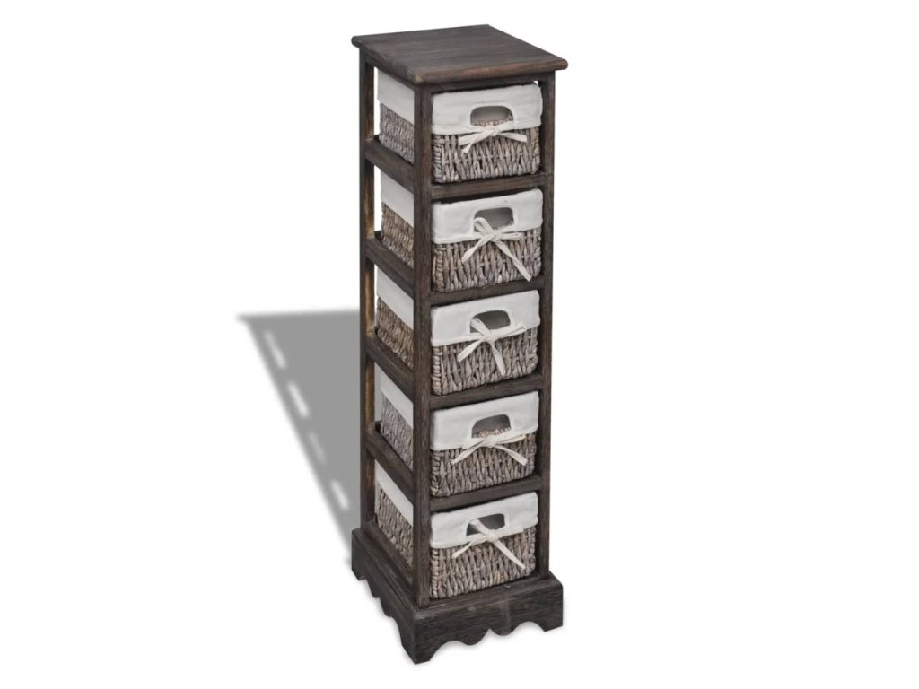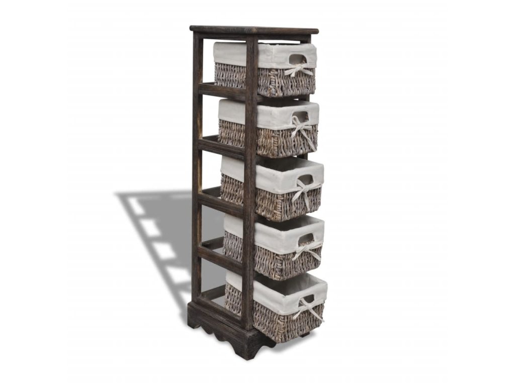 Dřevěný úložný regál s 5 proutěnými košíky hnědý 240801