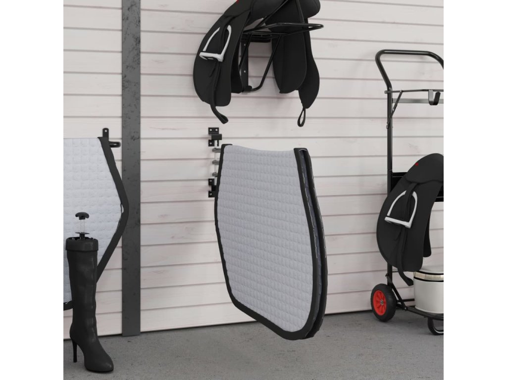 - Široké použití: Tento držák je ideální pro skladování jezdeckých padů, skvěle se hodí do přední části stáje, místnosti s jezdeckým vybavením, stodoly, do přívěsu, garáže atd.