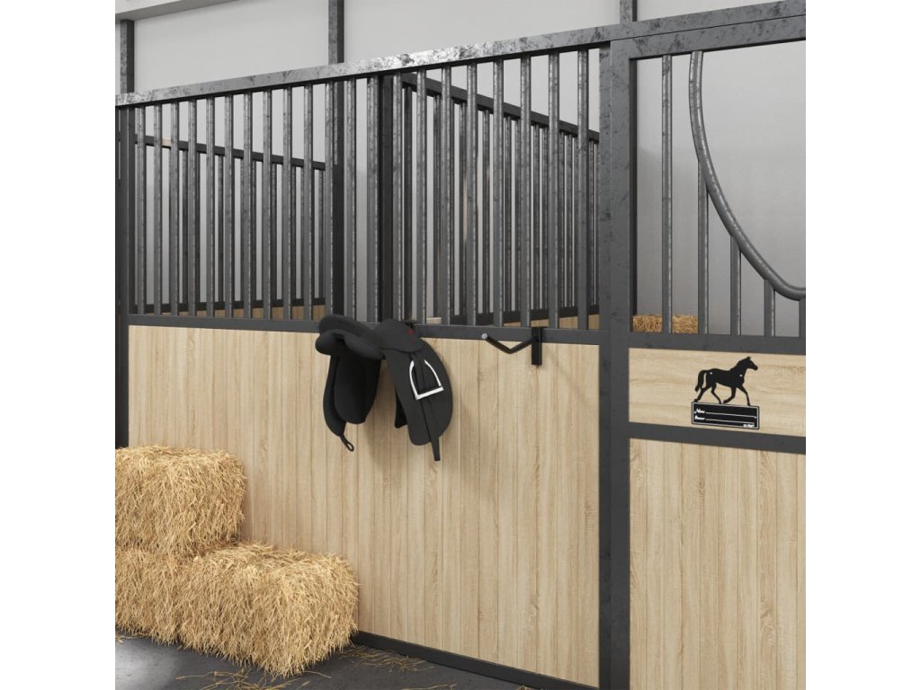 - Přenosné provedení: Tento závěsný držák na sedla je přenosný a lze jej snadno zavěsit na plotu, přívěs, dveře stodoly nebo jiné povrchy.