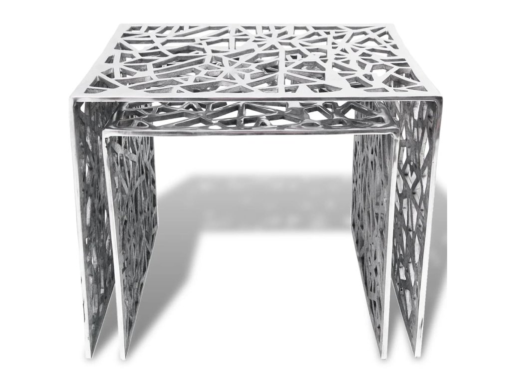 Dva kusy odkládací stolky čtvercové hliníkové stříbrné 243508
