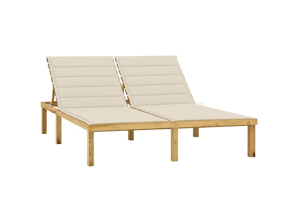 Dvojité lehátko s krémovými poduškami impregnovaná borovice 3065881