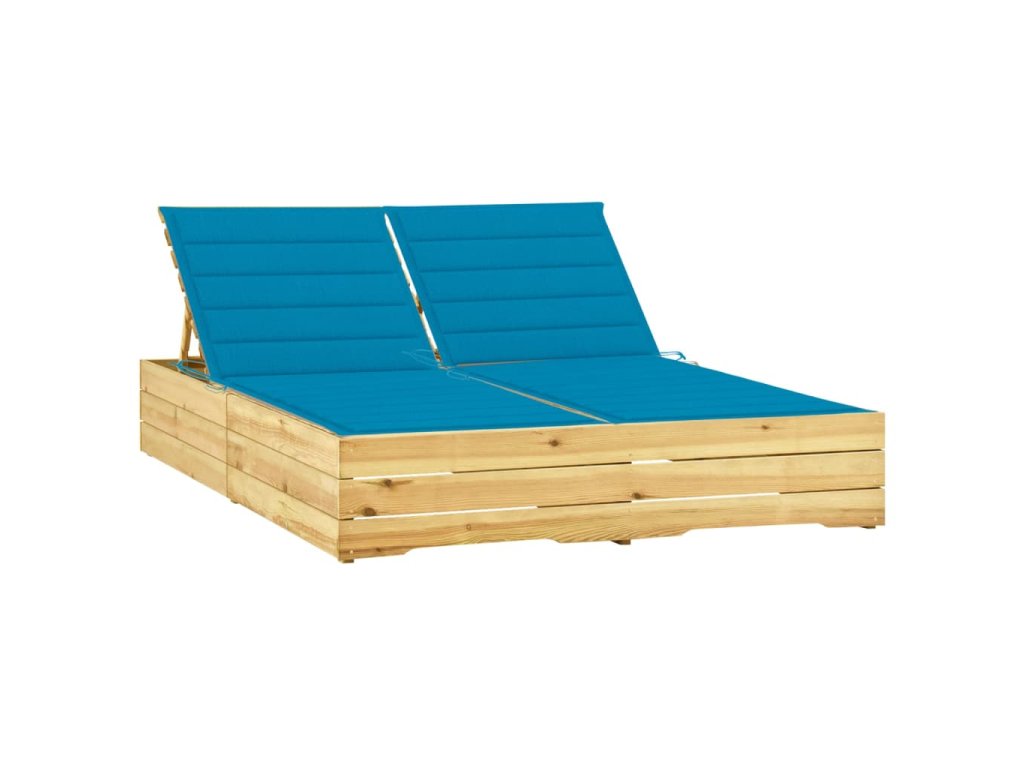 Dvojité lehátko s modrými poduškami impregnovaná borovice 3065973