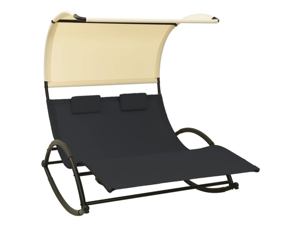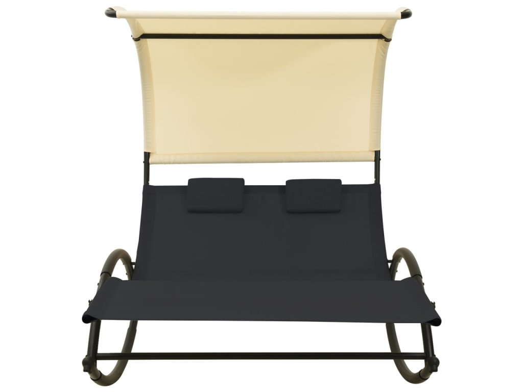 Dvojité zahradní lehátko s baldachýnem textilen černé a krémové 310547