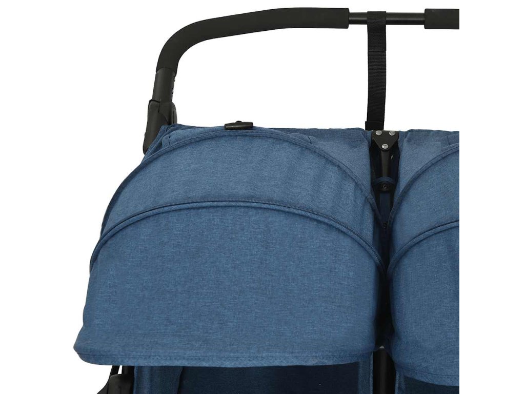 Dvojitý kočárek s ocelovým rámem je pevný a odolný. Opěradlo a opěrku nohou můžete nastavit v několika polohách, takže děti budou za všech okolností pohodlně usazené. Kulatá stříška je spolehlivě ochrání před přímým slunečním zářením. Přední zábradlíčko zaručuje optimální bezpečnost a přechází pádu dětí. Kočárek je také vybavený praktickým košem, kam si můžete zorganizovat potřeby pro miminko. Tento dvojitý kočárek je skládací pro snadné skladování a přepravu.