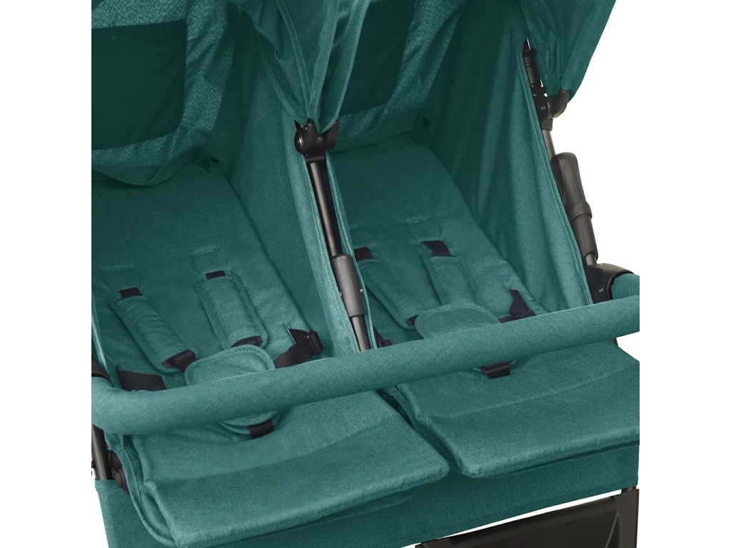 Dvojitý kočárek s ocelovým rámem je pevný a odolný. Opěradlo a opěrku nohou můžete nastavit v několika polohách, takže děti budou za všech okolností pohodlně usazené. Kulatá stříška je spolehlivě ochrání před přímým slunečním zářením. Přední zábradlíčko zaručuje optimální bezpečnost a přechází pádu dětí. Kočárek je také vybavený praktickým košem, kam si můžete zorganizovat potřeby pro miminko. Tento dvojitý kočárek je skládací pro snadné skladování a přepravu.