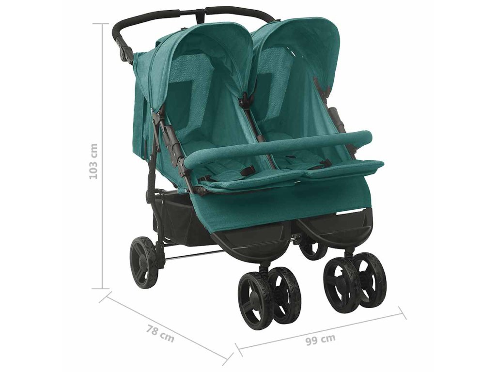 Dvojitý kočárek zelený ocel 10246