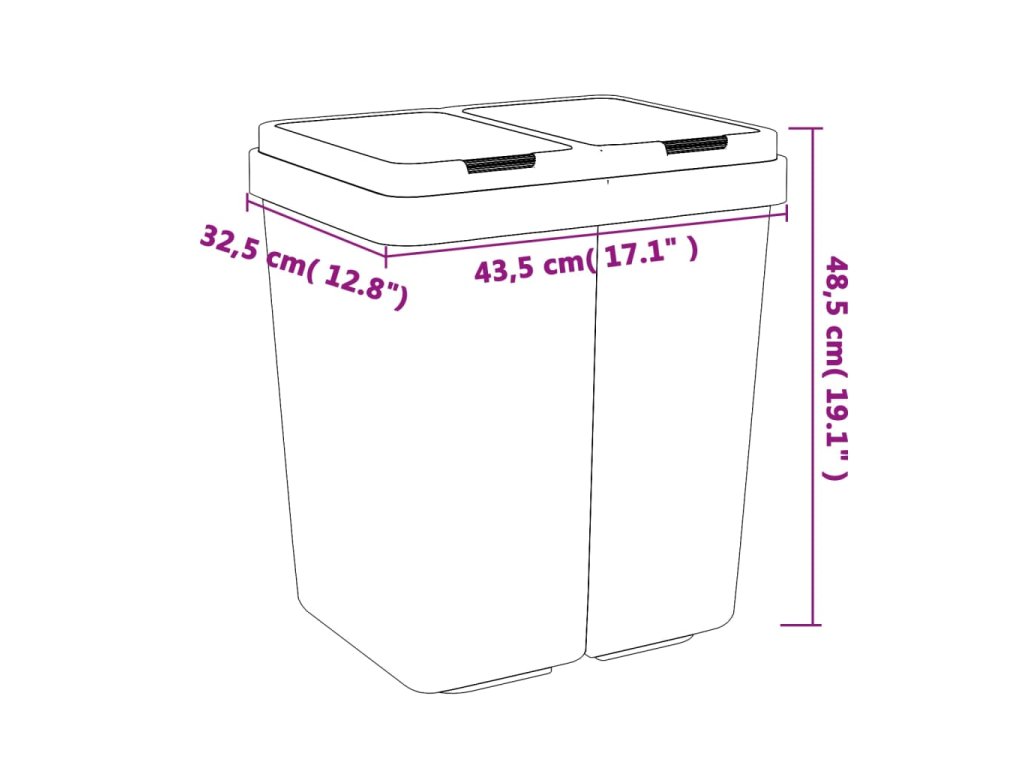 Tento dvojitý odpadkový koš se dvěma separačními přihrádkami je ideální pro třídění odpadu a hygienickou recyklaci.