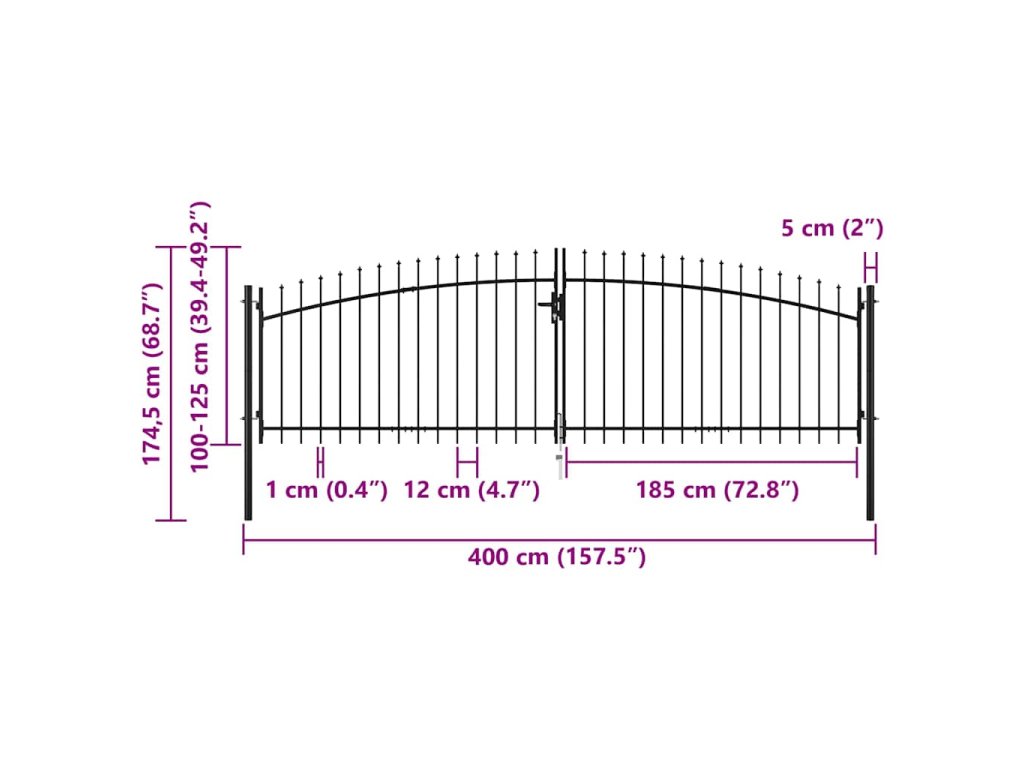 Dvoukřídlá plotová brána s hroty 400 x 175 cm 145739