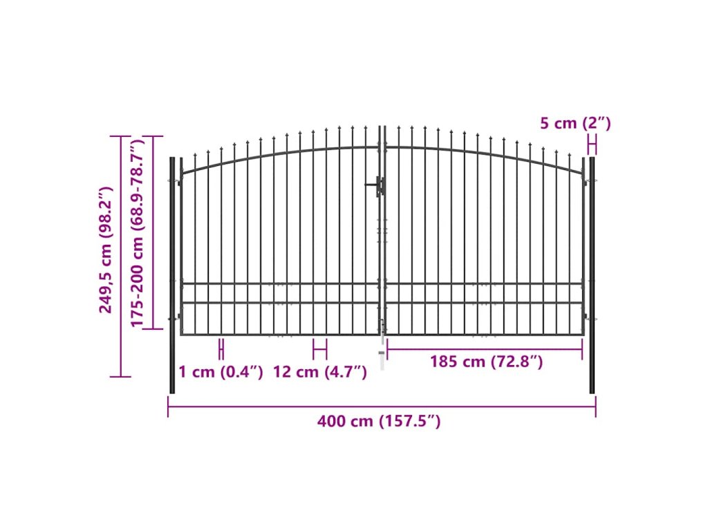 Dvoukřídlá plotová brána s hroty 400 x 248 cm 145742