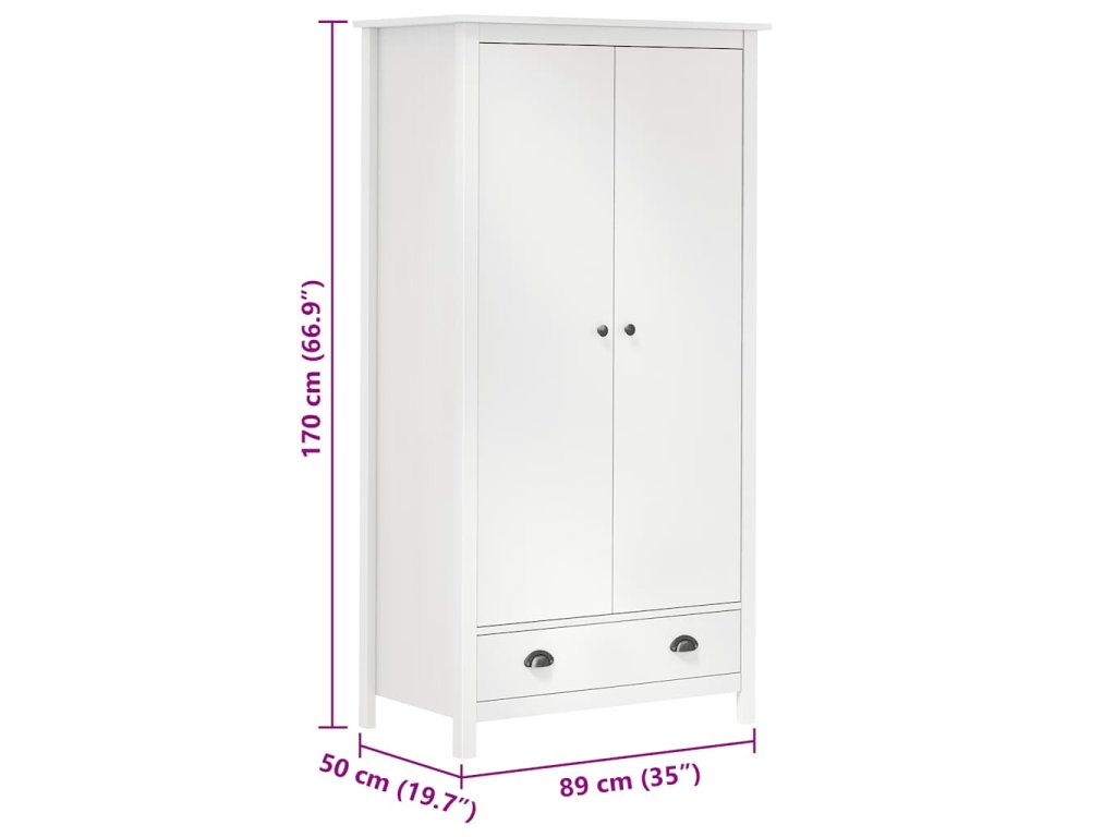 Dvoukřídlá šatní skříň Hill bílá 89x50x170 cm masivní borovice 288948