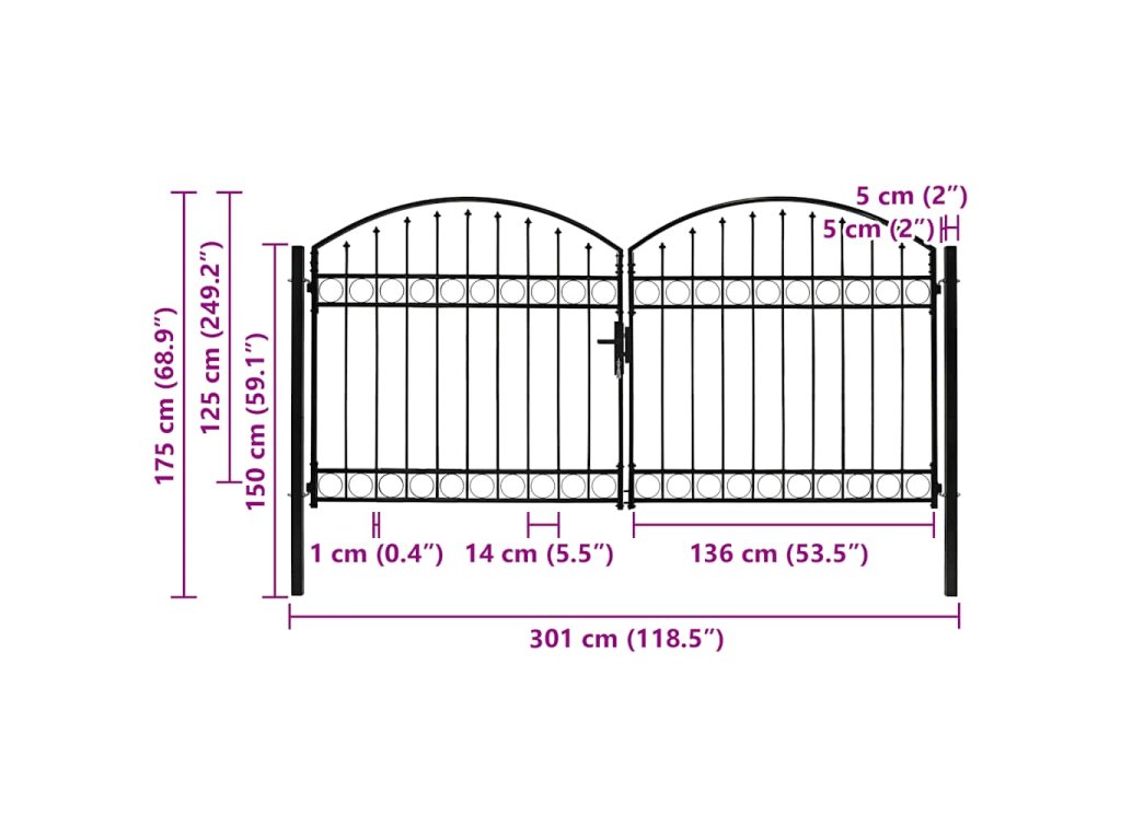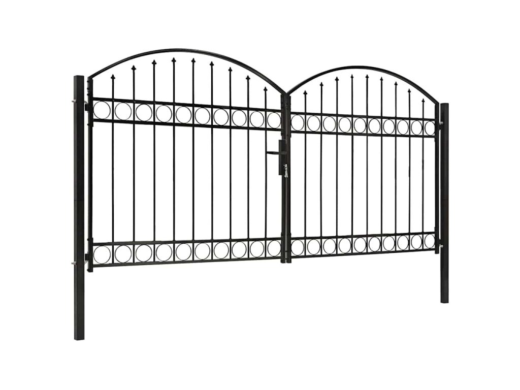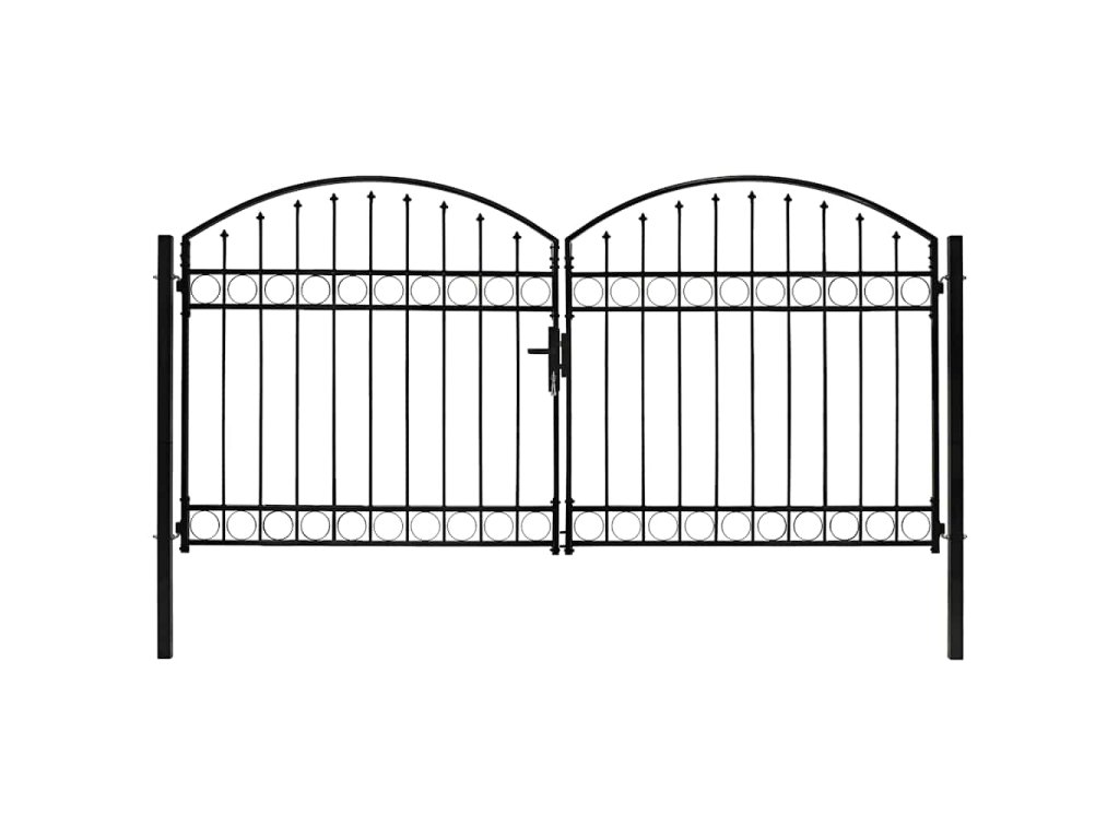 Dvoukřídlá zahradní brána s obloukem ocelová 300 x 125 cm černá 143089