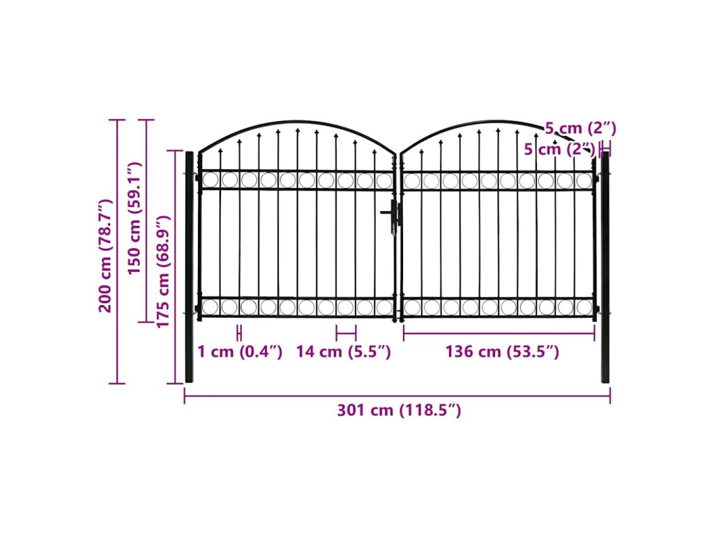 Dvoukřídlá zahradní brána s obloukem ocelová 300 x 150 cm černá 143090