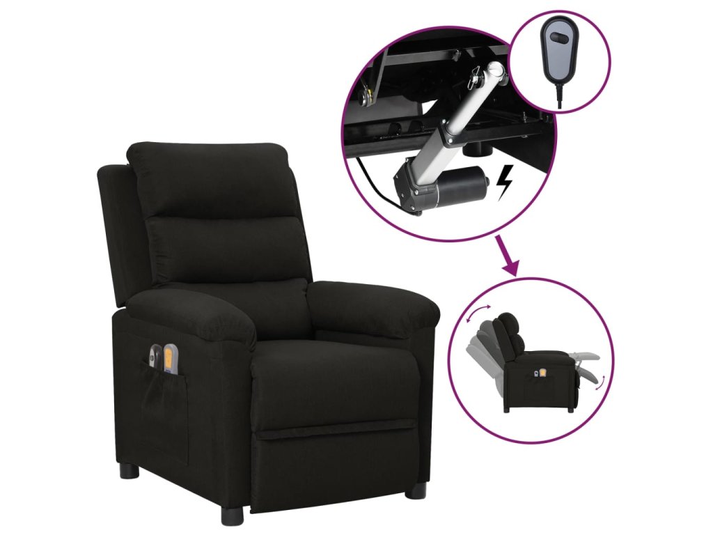 Elektrické masážní křeslo černé textil 3098977