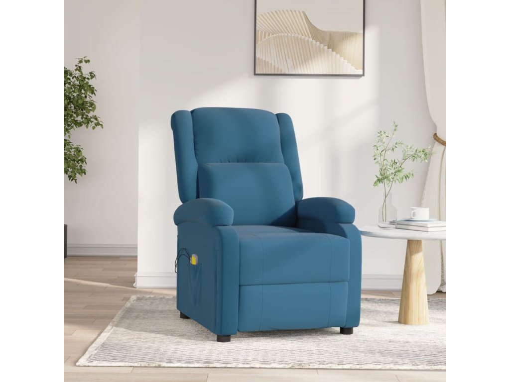 Elektrické masážní křeslo modré samet 3098414