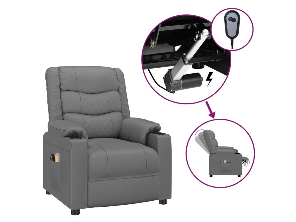 Elektrické masážní křeslo šedé umělá kůže 3143459