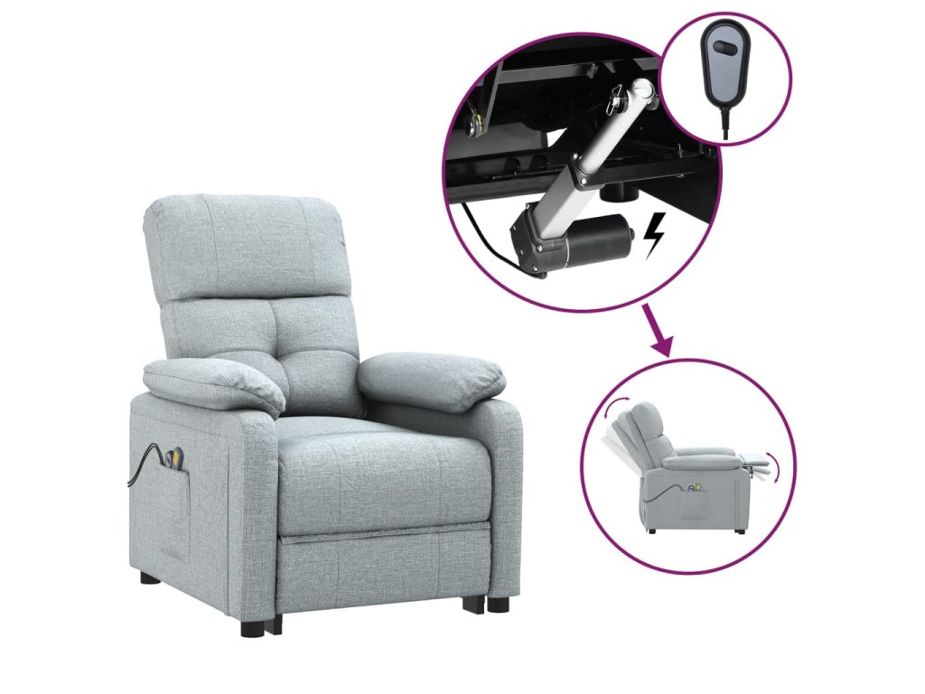 - Elektrická polohovací funkce: Polohovací křeslo je vybaveno elektromotorem pro funkci naklápění. Má 3 polohy naklápění, takže si můžete snadno nastavit opěradlo a podnožku pomocí přiloženého dvoutlačítkového ovladače, jak vám to bude nejlépe vyhovovat.