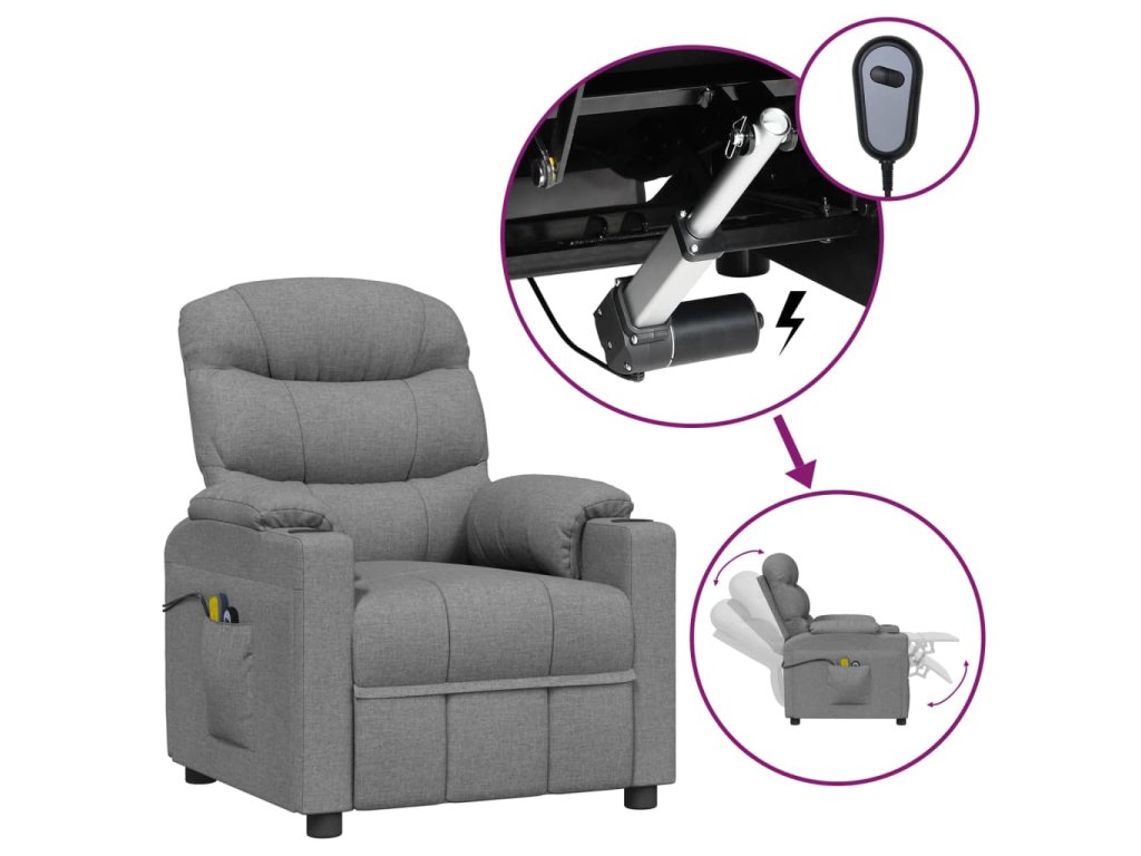 - Elektrická polohovací funkce: Polohovací křeslo je vybaveno elektromotorem pro funkci naklápění. Má 3 polohy naklápění, takže si můžete snadno nastavit opěradlo a podnožku pomocí přiloženého dvoutlačítkového ovladače, jak vám to bude nejlépe vyhovovat.