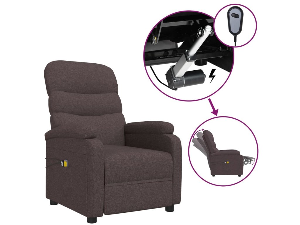 Elektrické masážní křeslo tmavě hnědé textil 3073699