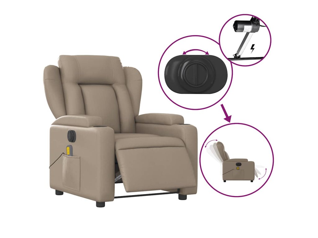 Elektrické masážní polohovací křeslo cappuccino umělá kůže 3204543