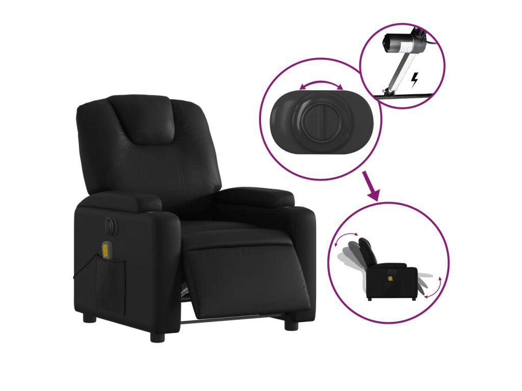 Elektrické masážní polohovací křeslo černé umělá kůže 3204423