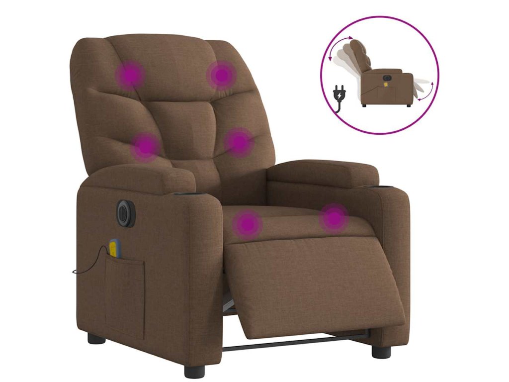 Elektrické masážní polohovací křeslo hnědé textil 3204588