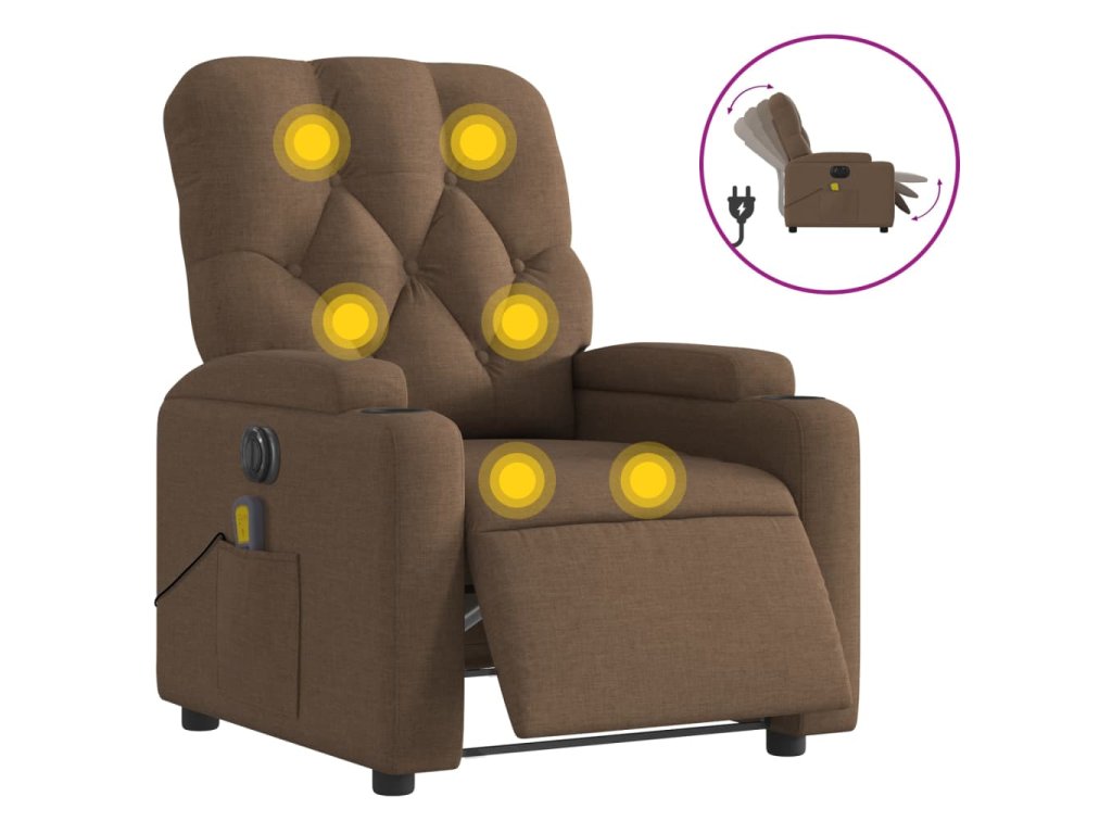 Elektrické masážní polohovací křeslo hnědé textil 3204702