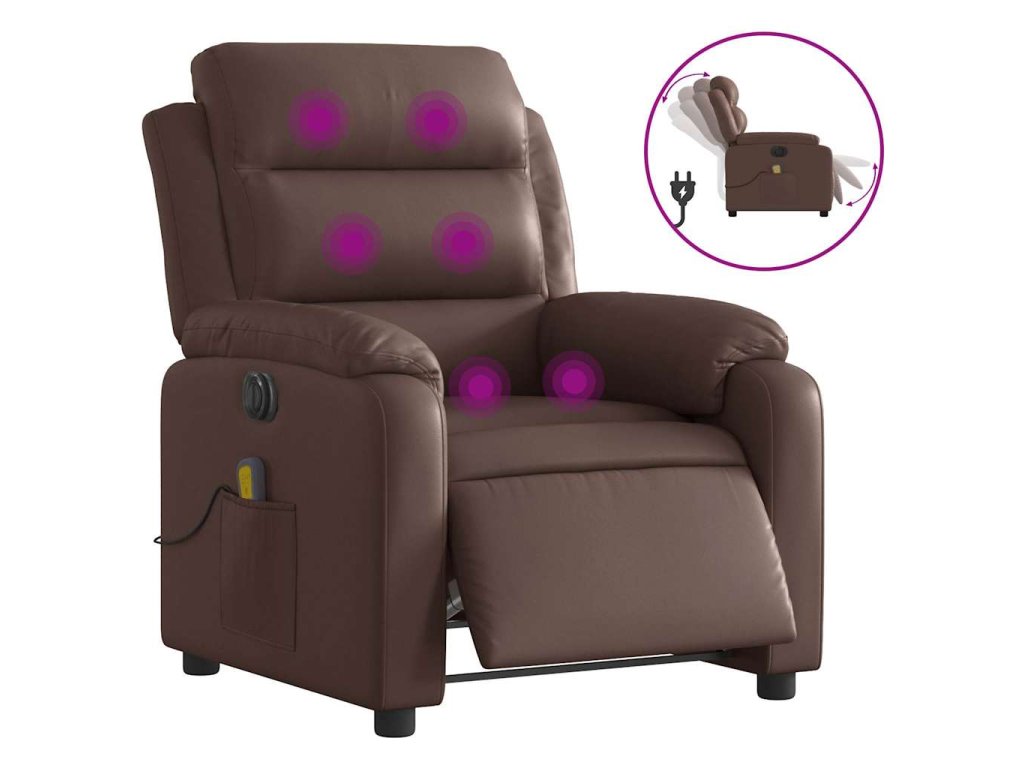 Elektrické masážní polohovací křeslo hnědé umělá kůže 3205037