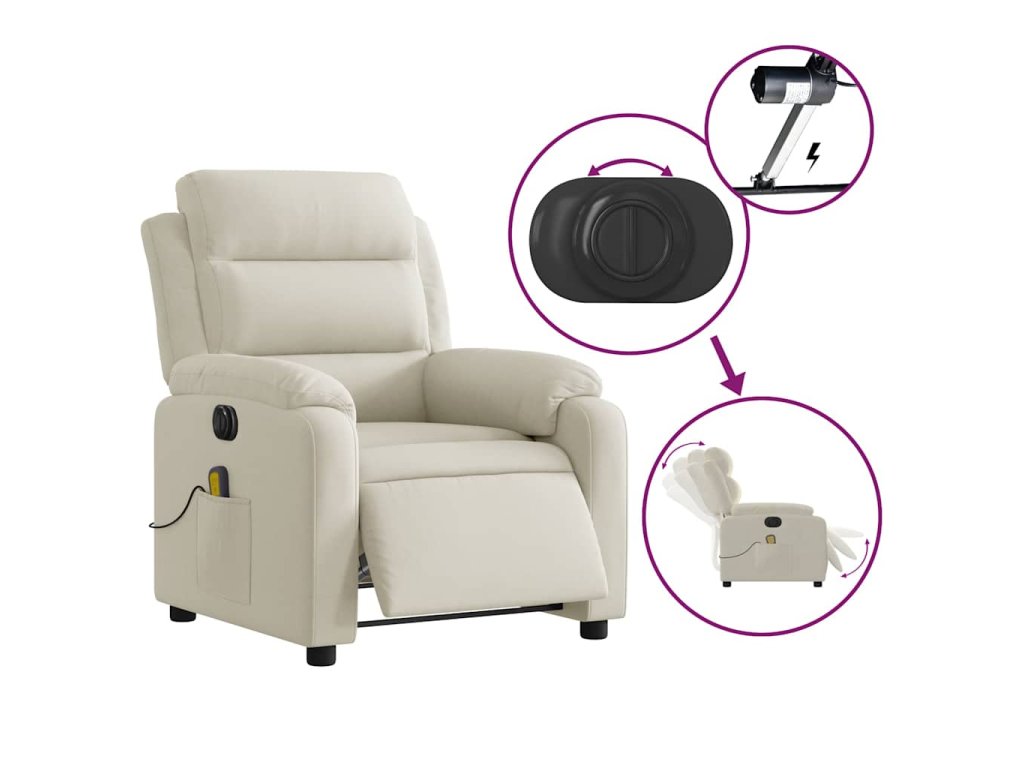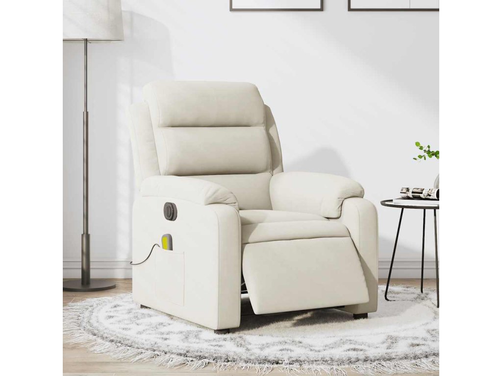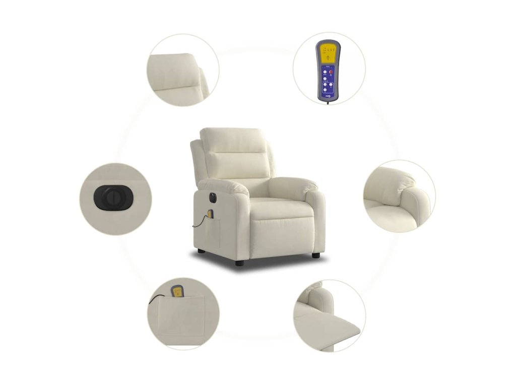 Elektrické masážní polohovací křeslo krémové samet 3205090