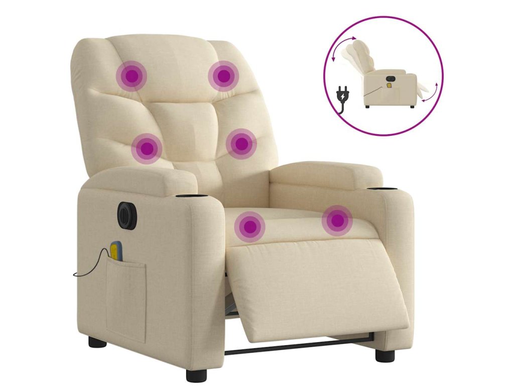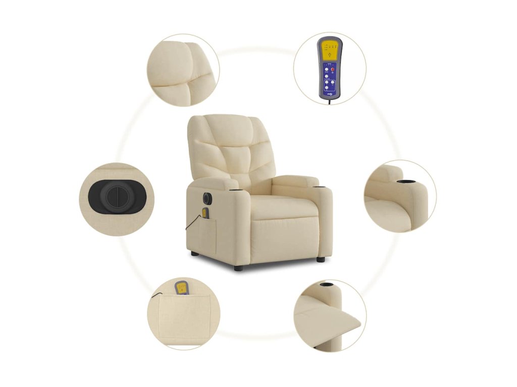 Elektrické masážní polohovací křeslo krémové textil 3204593